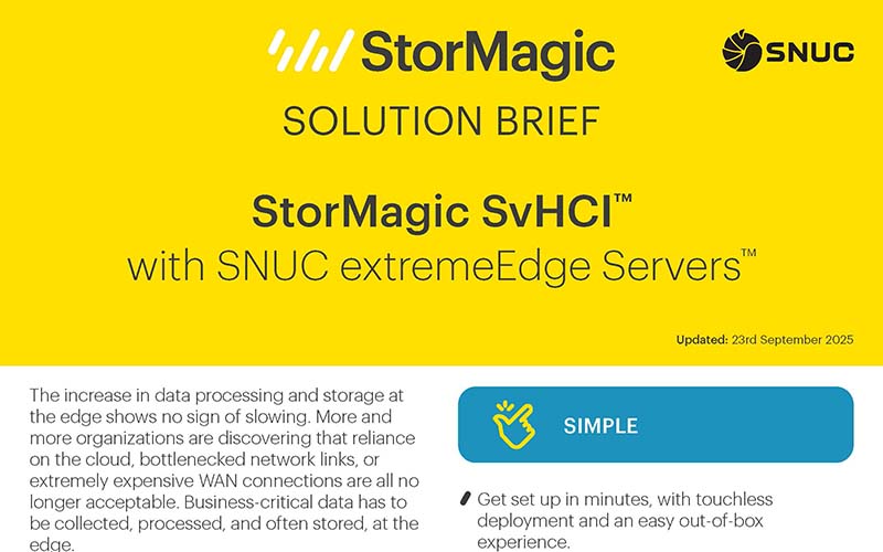 StorMagic and SNUC are tackling the challenges within the world’s most demanding environments with purpose-built solutions. The OEM agreement combines SNUC’s fanless, rugged, AI-ready extremeEDGE Servers™ with full-stack hyperconverged infrastructure software, StorMagic SvHCI. The result? Purpose-built, edge-ready appliances for your exact needs.
