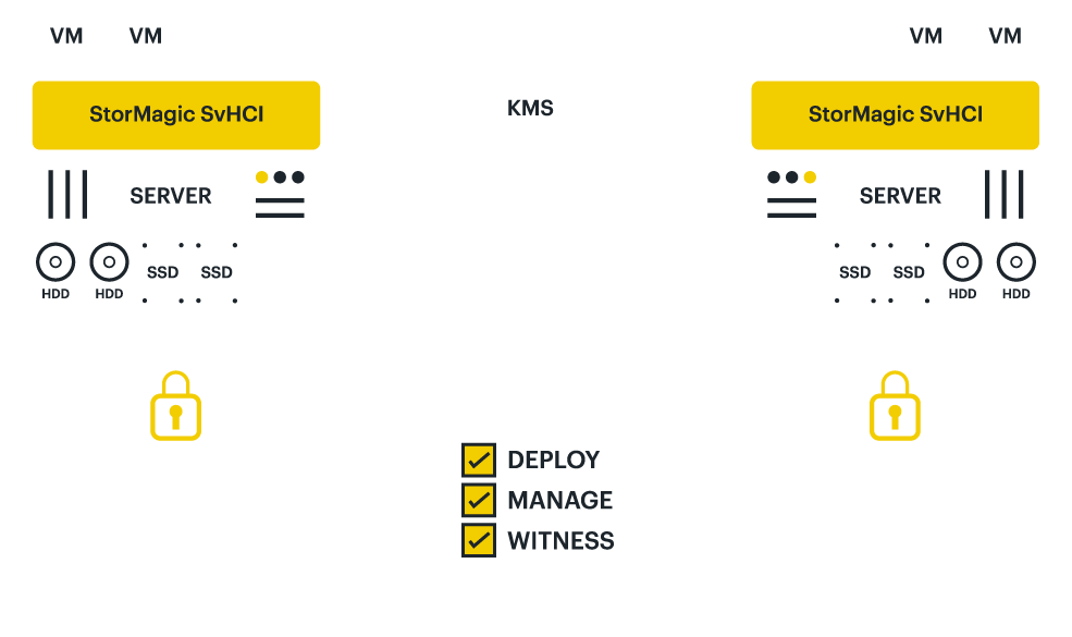 Both StorMagic SvHCI and SvSAN include data encryption that is FIPS 140-2 compliant and eliminates the need for complex, expensive specialist hardware, and OS or hypervisor-level solutions.